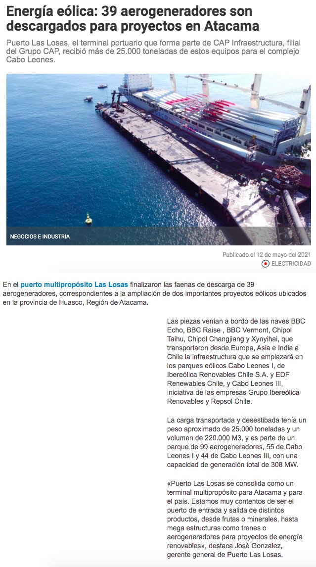 Puerto Las Losas culmina exitosa descarga de aerogeneradores para proyectos eólicos en Atacama - (Nostálgica Online)