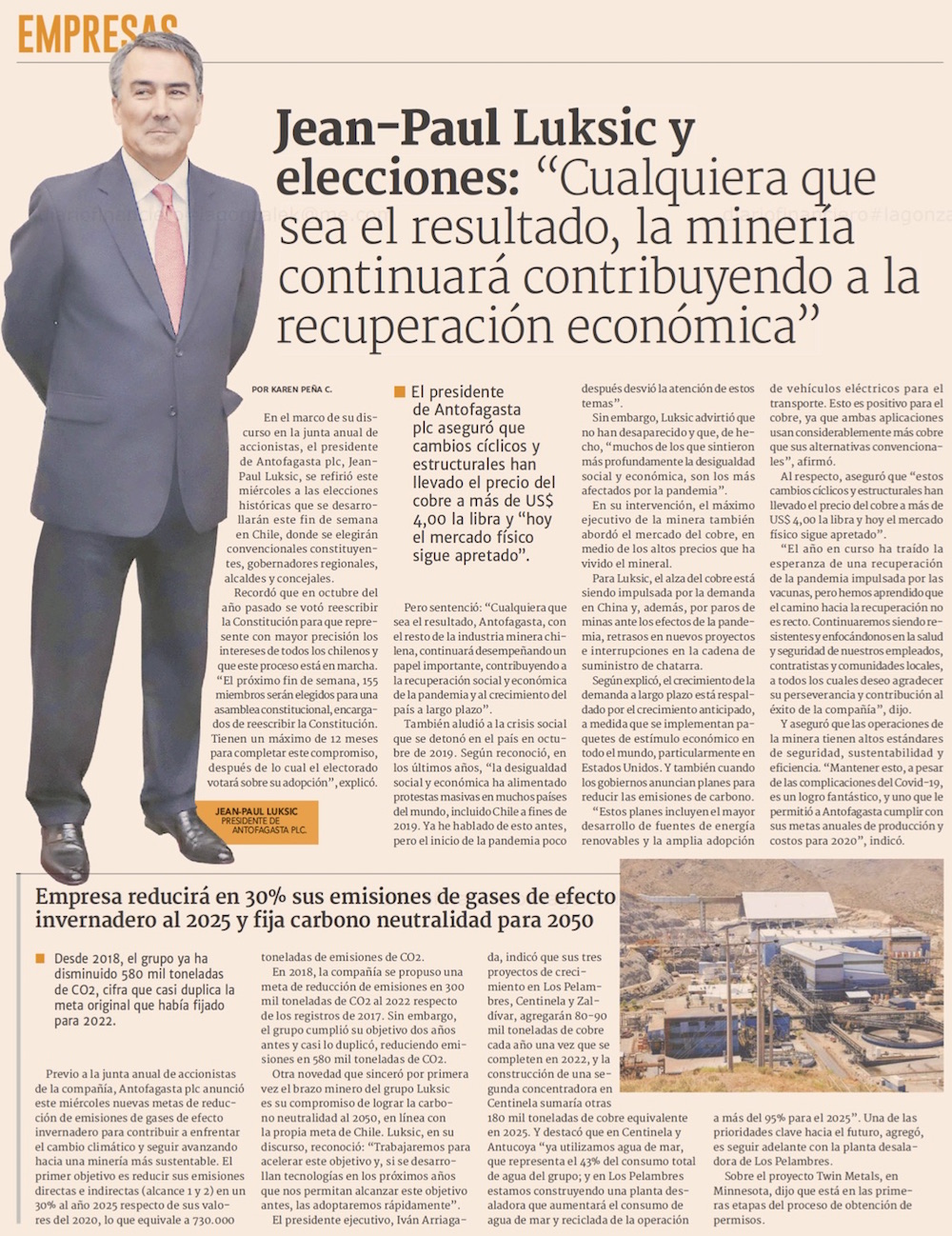 Jean Paul Luksic: Cualquiera que sea el resultado de las elecciones, Antofagasta plc seguirá contribuyendo a la recuperación económica - (Pulso)