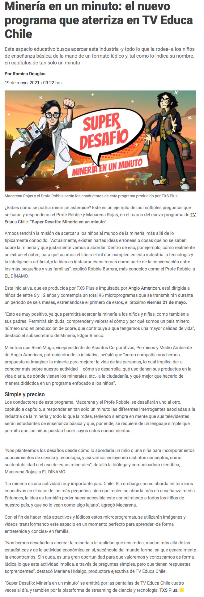 TV Educa Chile estrena programa que acerca la minería a los niños - (elreporterodeiquique)