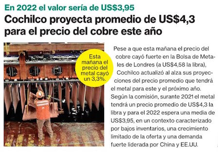 Cochilco aplica fuerte alza en proyección para el precio del metal rojo - (Pulso)