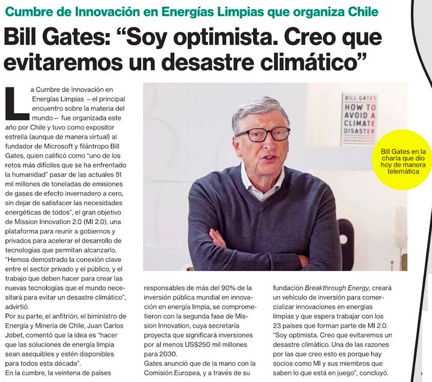 Bill Gates hace llamado a elevar inversiones contra la crisis climática - (El Mercurio de Santiago)
