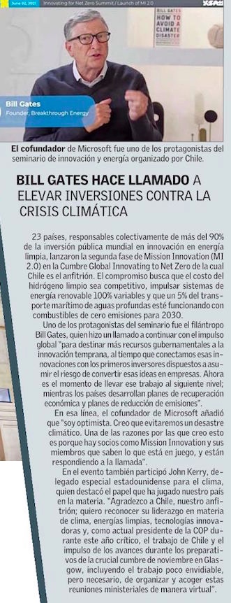 Bill Gates: “Soy optimista. Creo que evitaremos un desastre climático - (La Segunda)