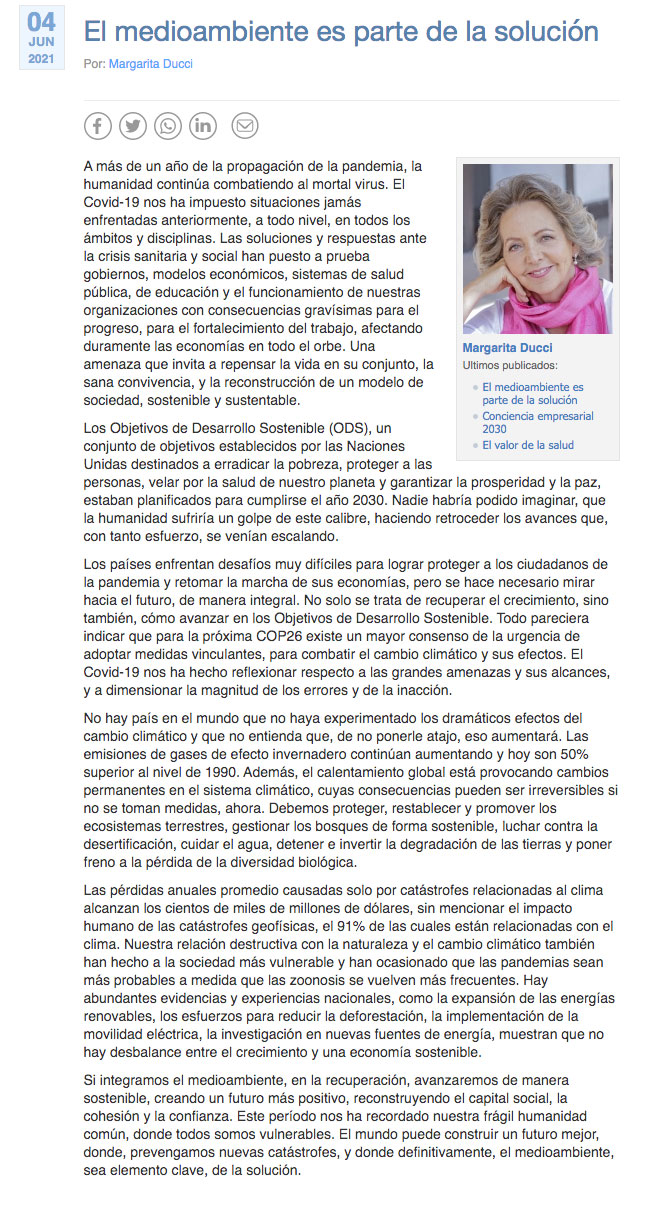 El medioambiente es parte de la solución - (El Mercurio de Antofagasta)