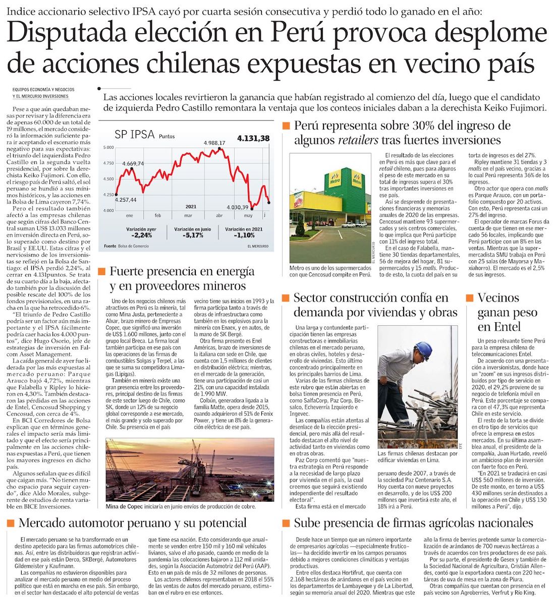 Firmas chilenas que operan en Perú sufren por incertidumbre electoral - (La Segunda)