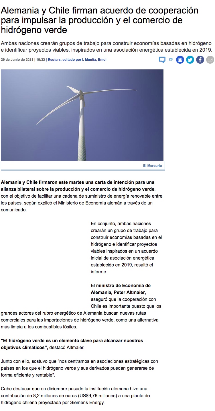 Alemania firma con Chile un acuerdo para impulsar la cooperación en materia de hidrógeno verde - (El Mostrador)