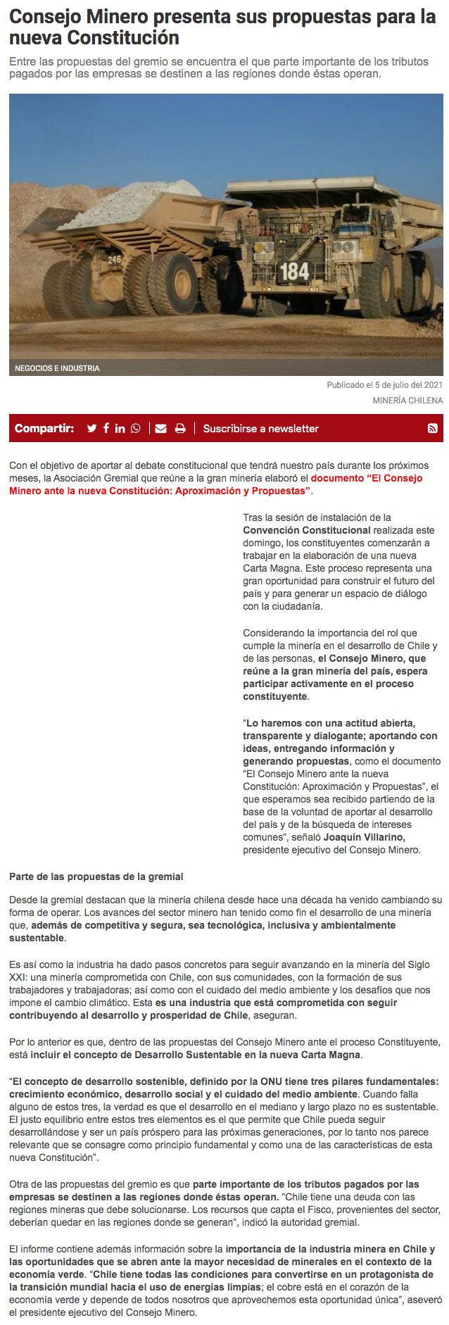 Consejo Minero presenta sus propuestas para la nueva Constitución - (nuevaminería online)