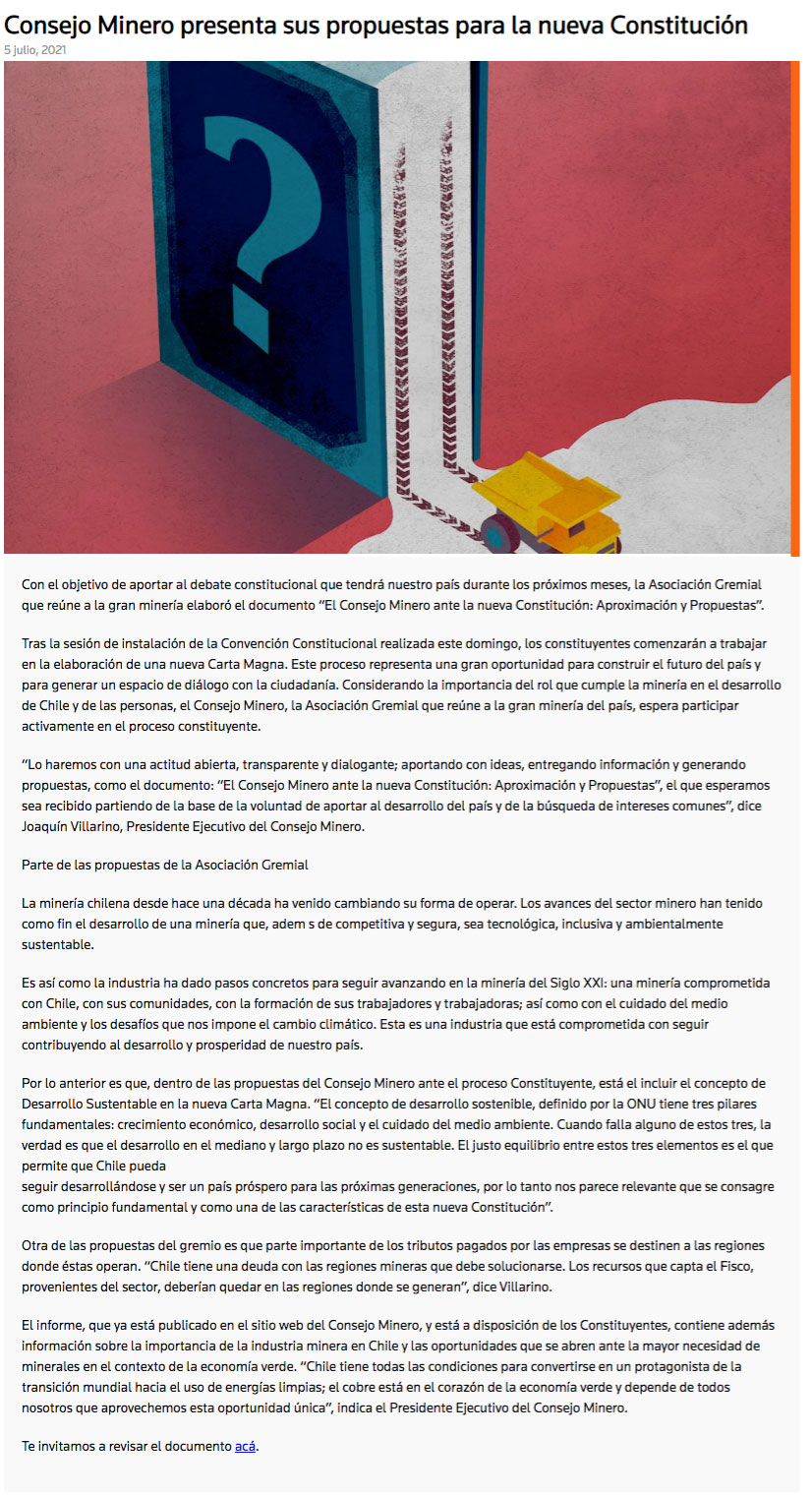 Consejo Minero presenta sus propuestas para la nueva Constitución - (mch.cl)