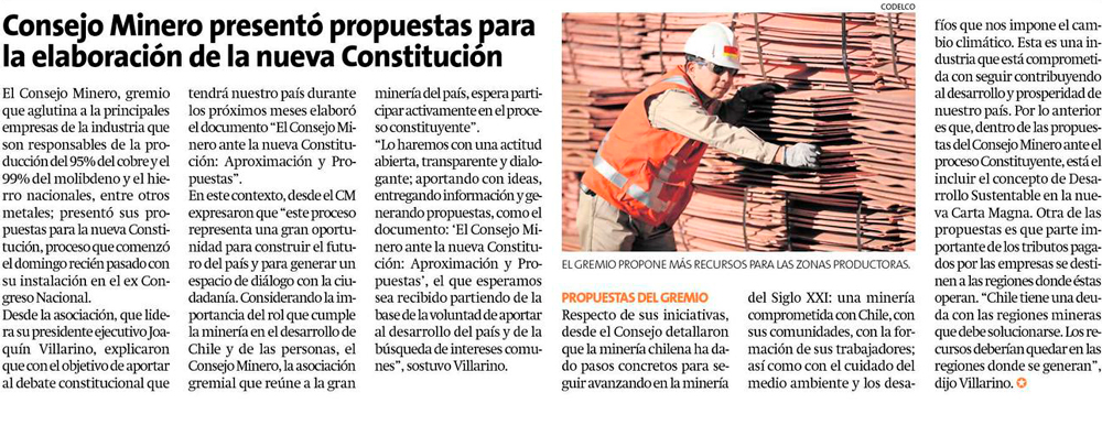 Consejo Minero presenta sus propuestas para la nueva Constitución - (mch.cl)