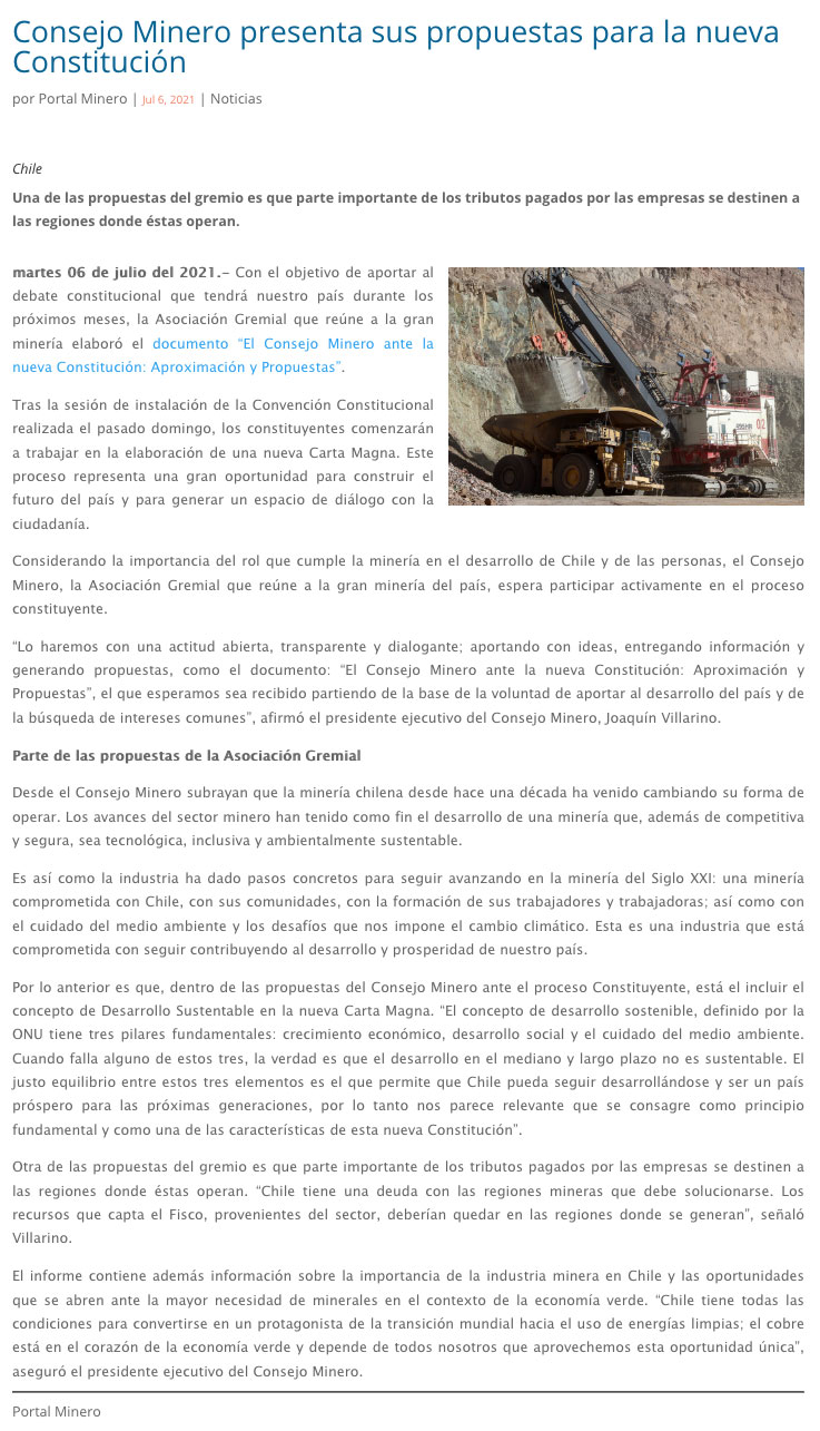 Consejo Minero entrega propuestas a constituyentes y pide más recursos para regiones productoras - (norteminero online)