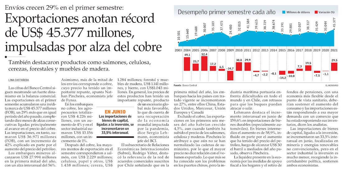 En junio siguió avances de las exportaciones y de las importaciones - (Diario Financiero)