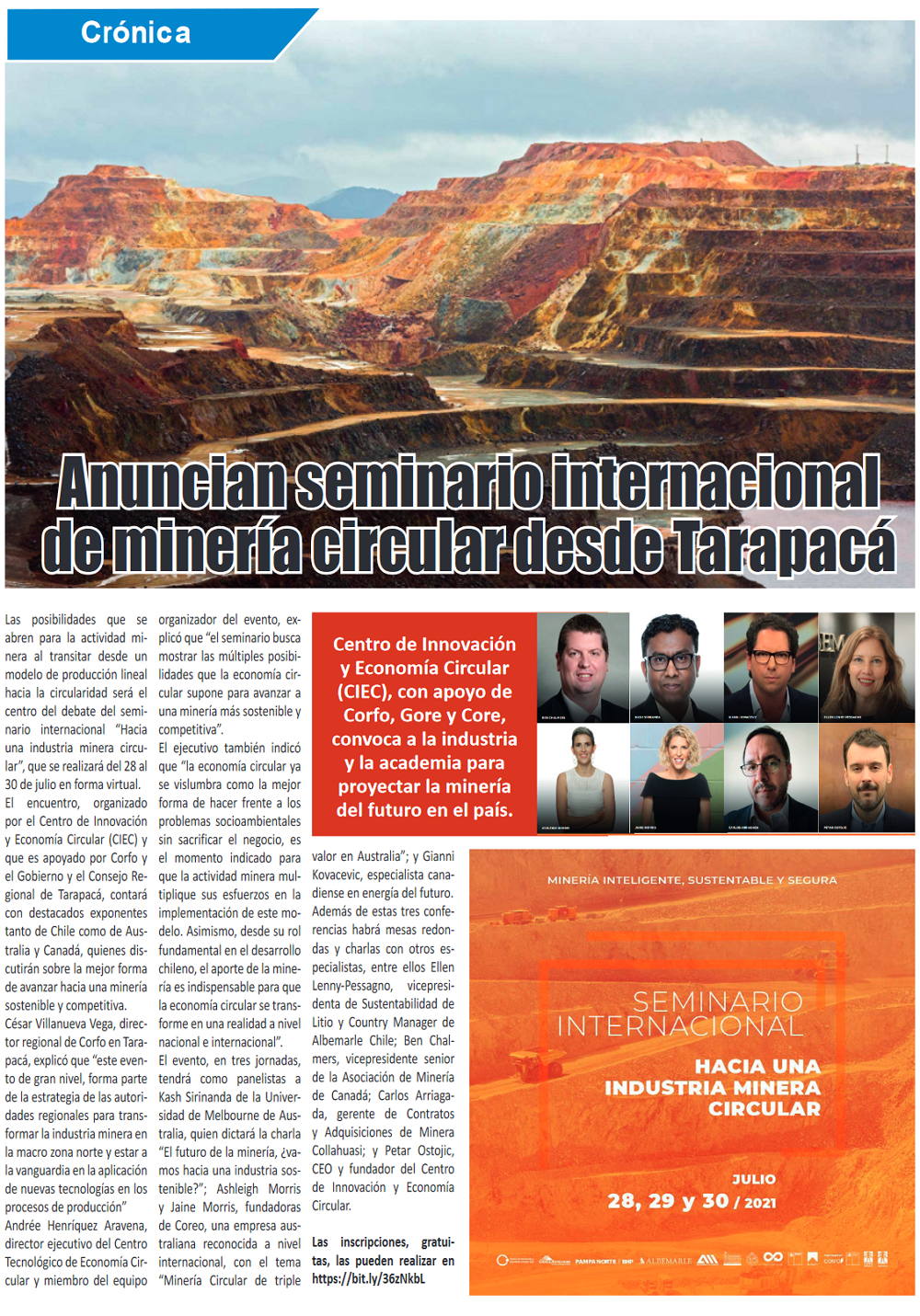 Anuncian seminario internacional de minería circular en Tarapacá - (Estrella de Iquique)