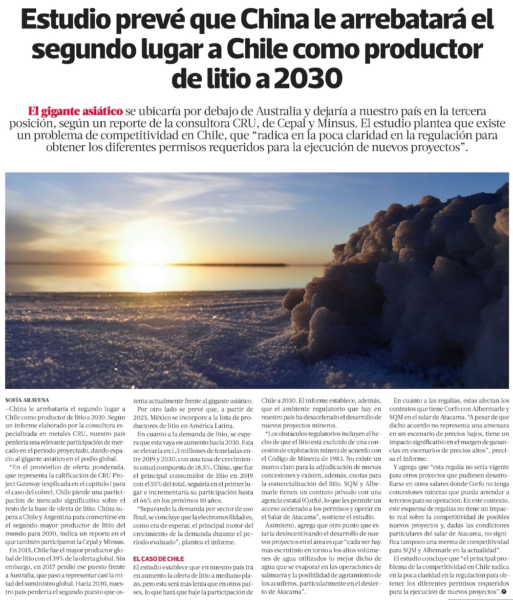China podría superar a Chile como segundo mayor productor de litio hacia 2030 - (Diario Financiero)