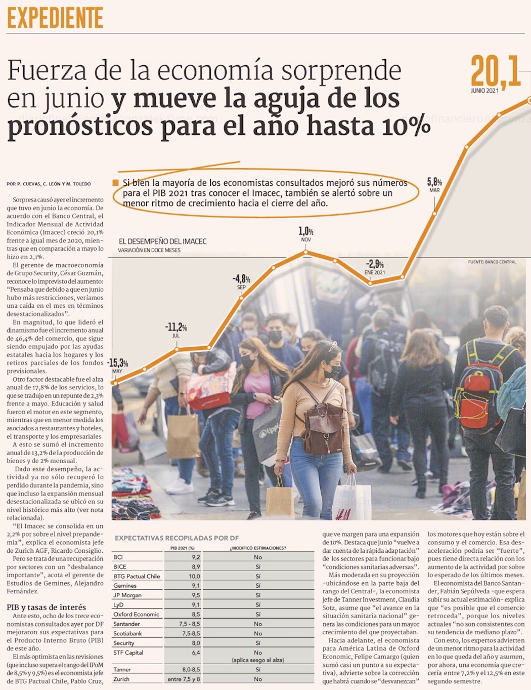 Economía retoma nivel previo al estallido por factores transitorios que no estarán en 2022 - (El Mercurio de Santiago)