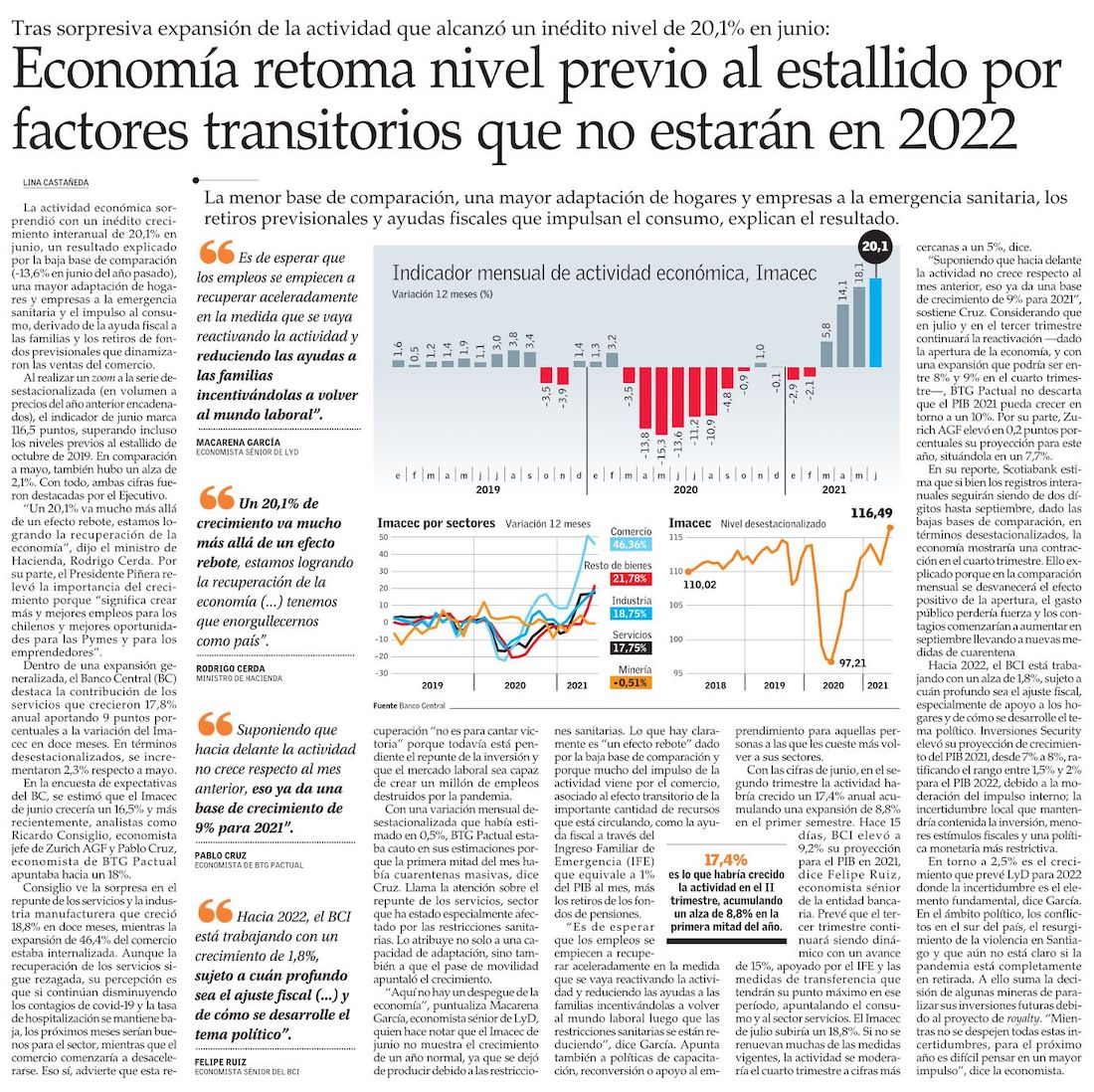 Fuerza de la economía sorprende en junio y mueve la aguja de los pronósticos para el año hasta 10% - (Diario Financiero)