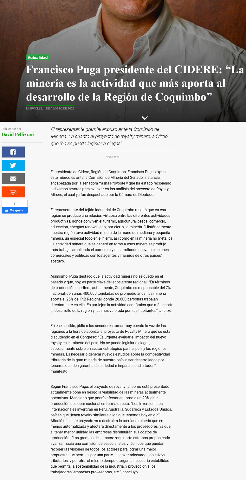 Presidente de Cidere expuso sobre alcances del royalty ante la Comisión de Minería del Senado - (El Día)