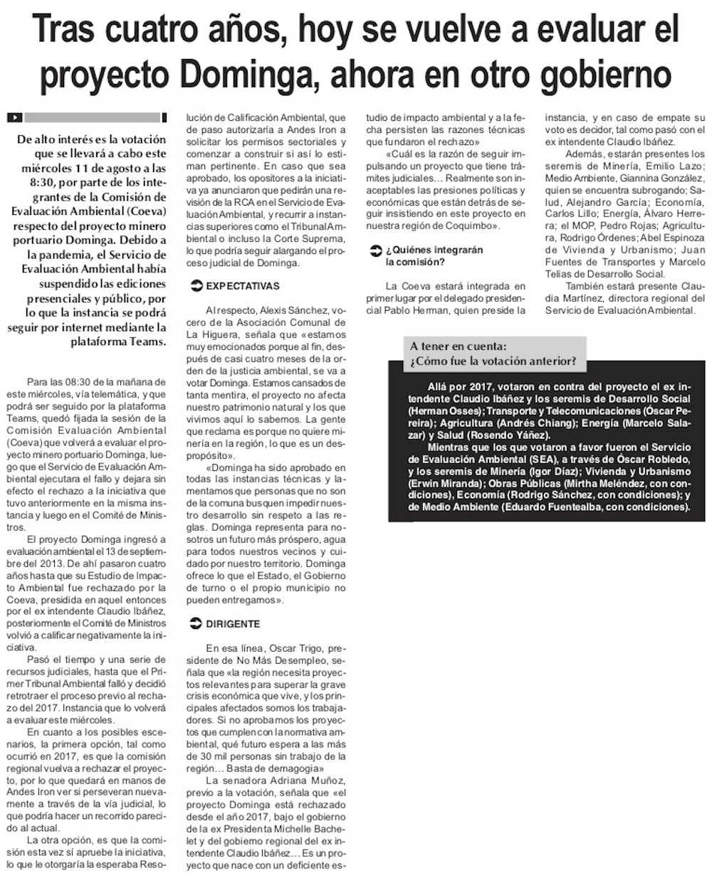 Comisión Ambiental vota hoy proyecto Dominga en medio de fuerte polarización - (El Día)