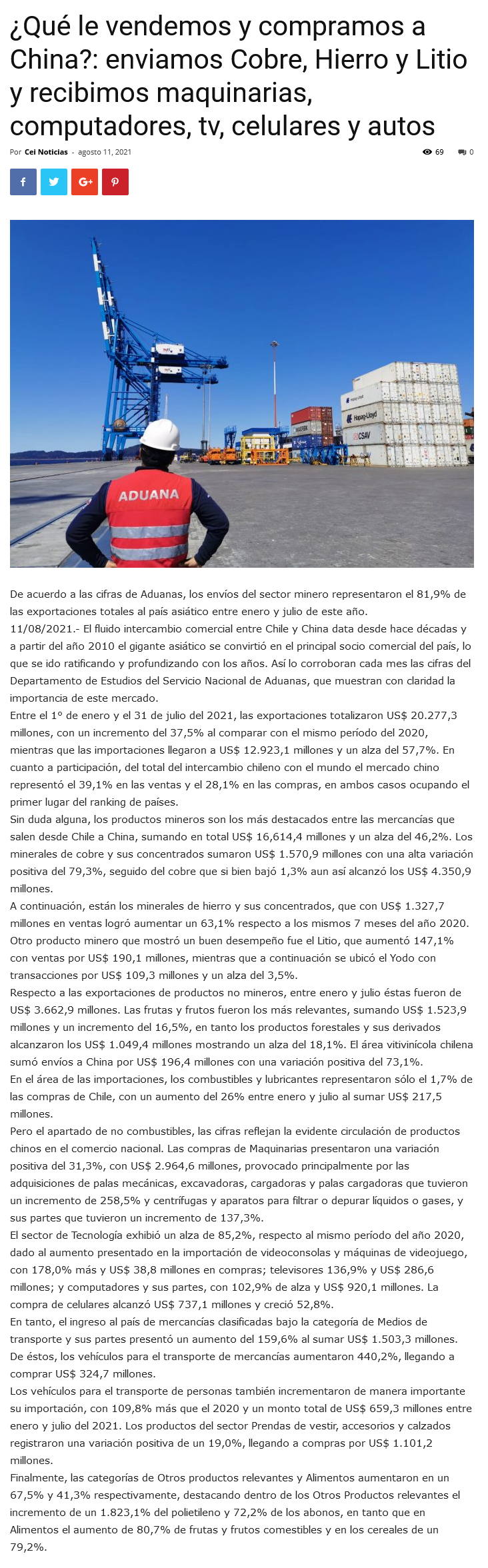 Intercambio comercial entre Chile y China se incrementa 37,5% en los últimos siete meses - (portalportuario)