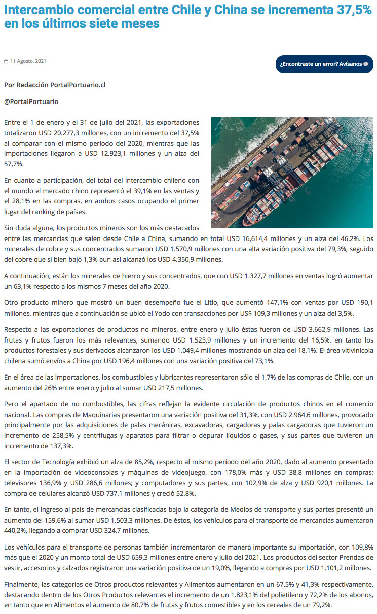 ¿Qué le vendemos y compramos a China?: enviamos Cobre, Hierro y Litio y recibimos maquinarias, computadores, tv, celulares y autos - (ceinoticias.cl)