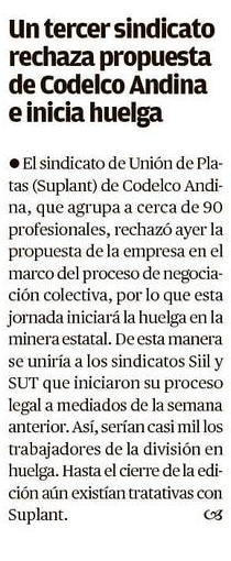 Tercer sindicato de División Andina de Codelco se acerca a la huelga - (Diario Financiero)