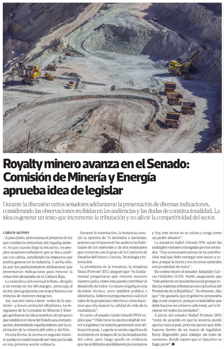 Royalty minero: Comisión de Minería y Energía del Senado aprueba idea de legislar y proyecto pasa a Sala - (El Mostrador)