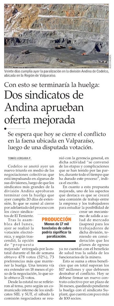 Codelco anuncia cierre de negociación colectiva anticipada con todos los sindicatos de El Teniente - (Pulso)