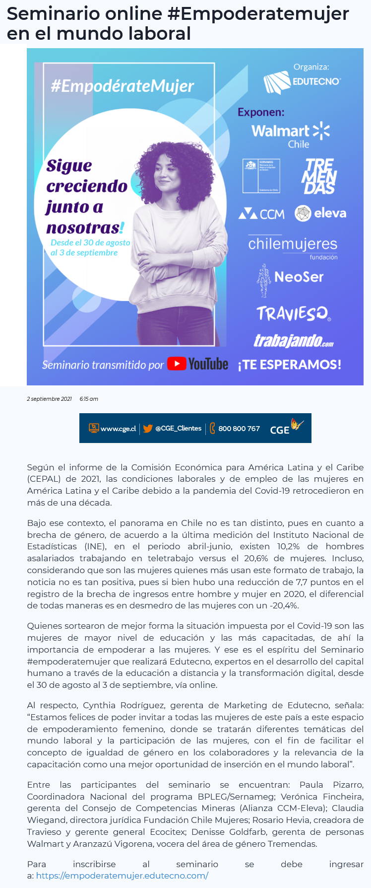 Seminario online #empoderatemujer en el mundo laboral - (infogate.cl)