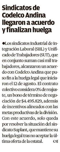 Empleados de la minera Andina de Codelco acuerdan contrato y levantan huelga - (americaeconomia online)