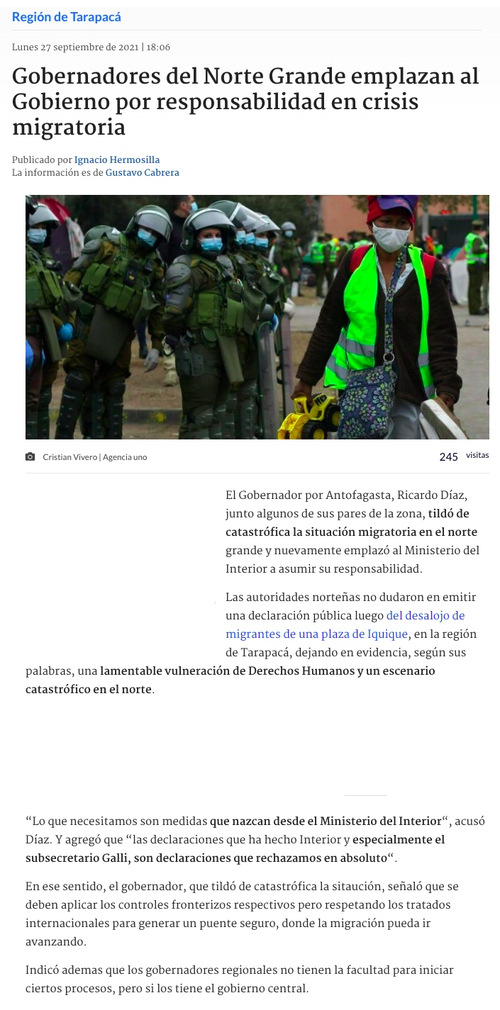 Migrantes expresan temor por estar en Iquique y gobernación inicia los traslados a Santiago - (El Mercurio de Santiago)
