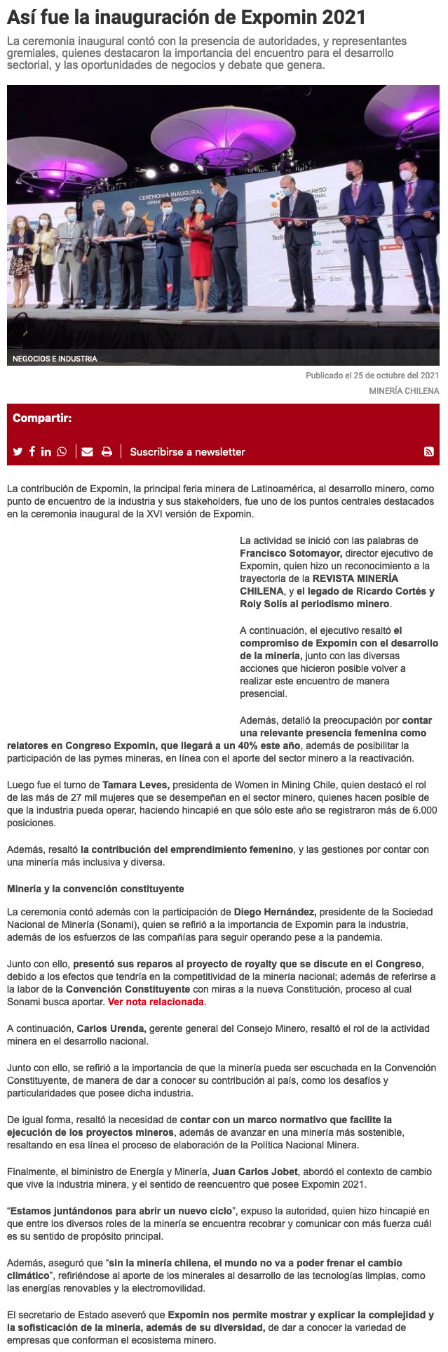 Expomin 2021: así fue su inauguración - (mineriayfuturo.cl)
