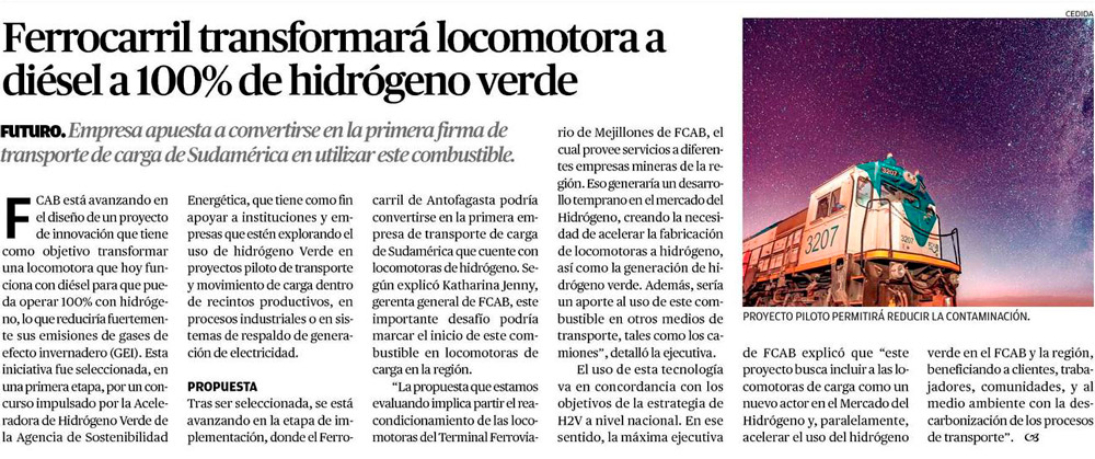 FCAB avanza en el diseño de un proyecto para transformar locomotoras 100% a hidrógeno verde - (mch.cl)