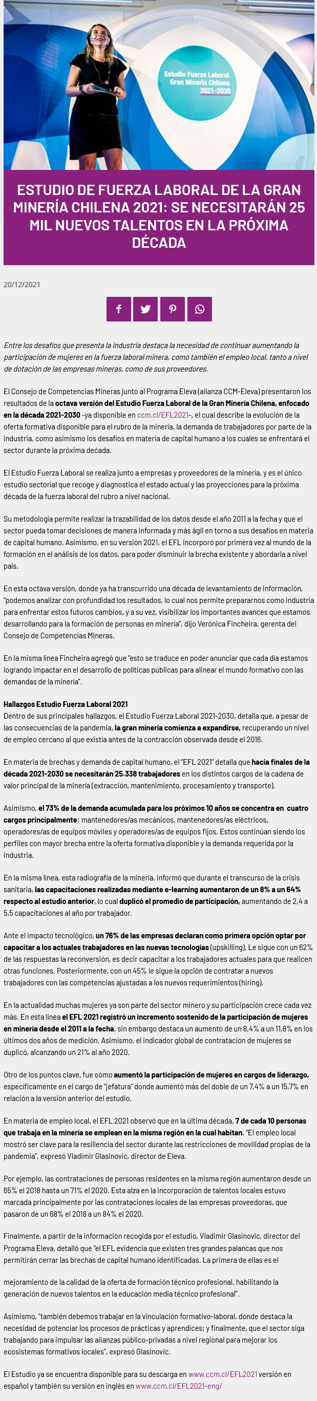 Estudio de Fuerza Laboral de la Gran Minería Chilena 2021: Se necesitarán 25 mil nuevos talentos en la próxima década - (tierramarillano.cl)