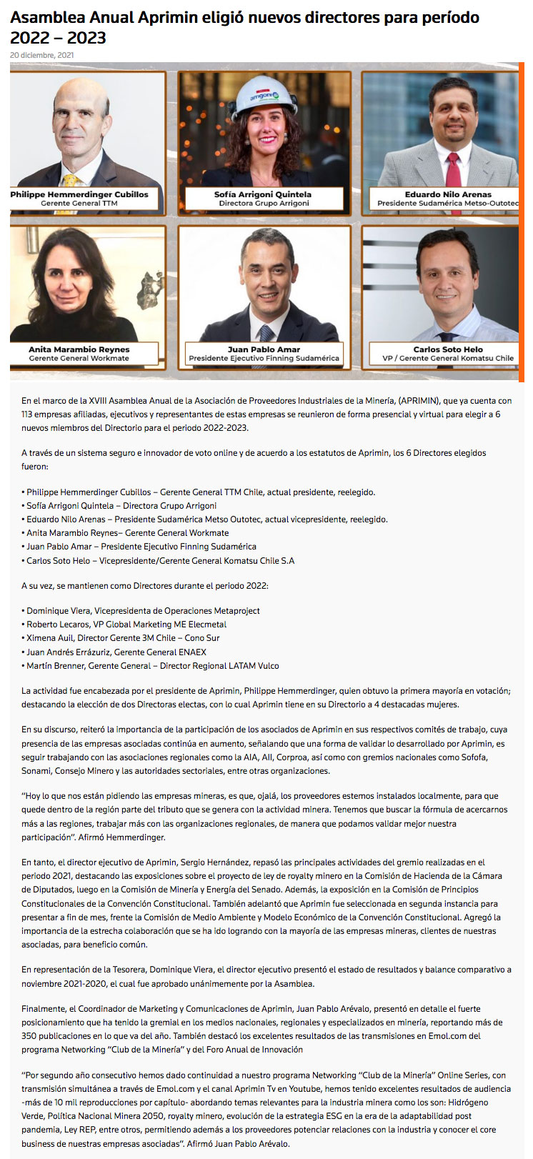 Asamblea Anual Aprimin eligió nuevos directores para periodo 2022-2023 - (Nostálgica Online)