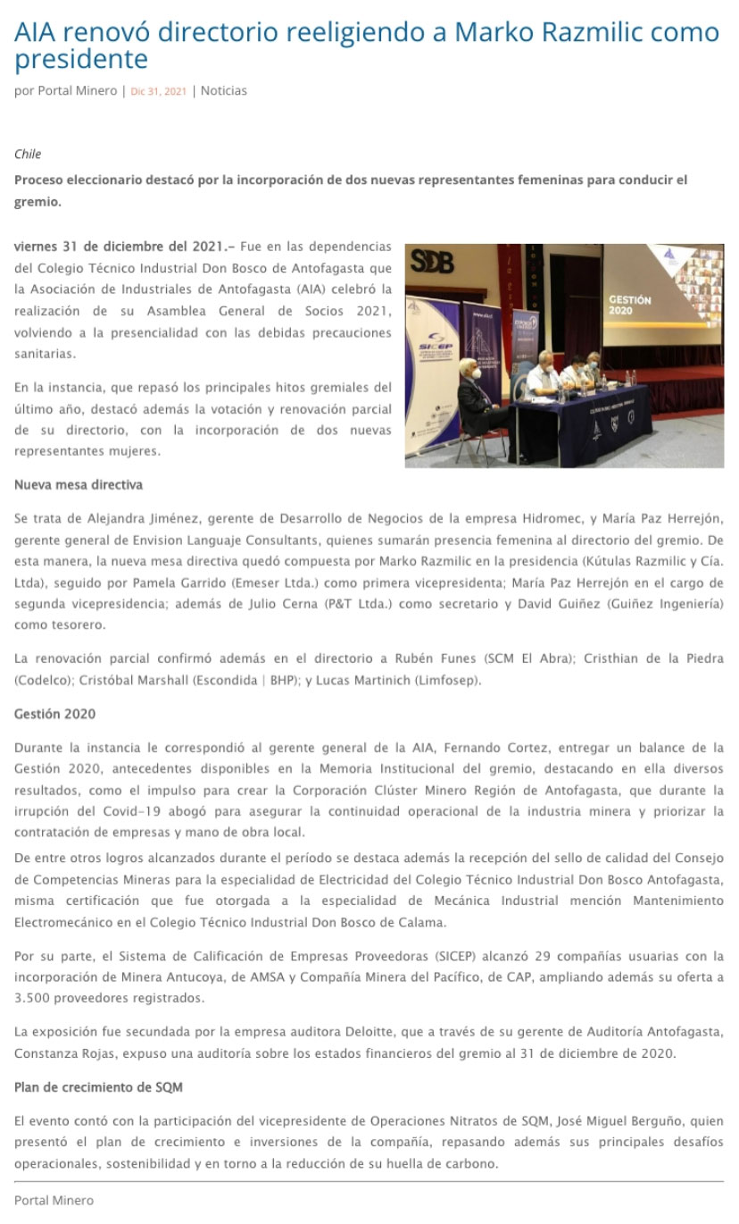 AIA renovó su directorio reeligiendo a Marko Razmilic como presidente - (reporteminero)