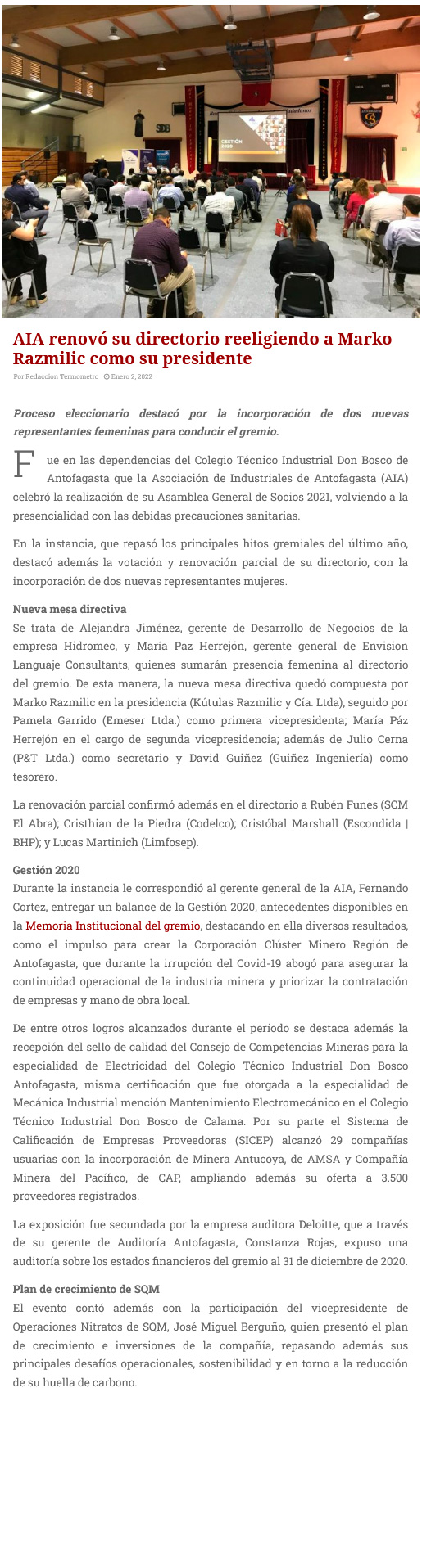 AIA renovó su directorio reeligiendo a Marko Razmilic como presidente - (reporteminero)
