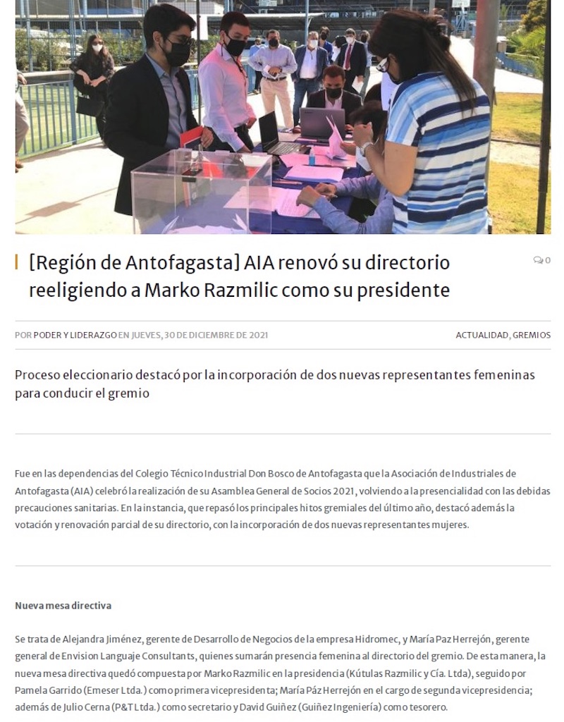 AIA renovó su directorio y reelige a Marko Razmilic en la presidencia - (nuevaminería online)
