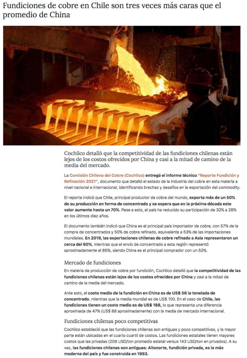 Mercado fundiciones de cobre: La realidad y proyección de Chile versus la de China - (mch.cl)