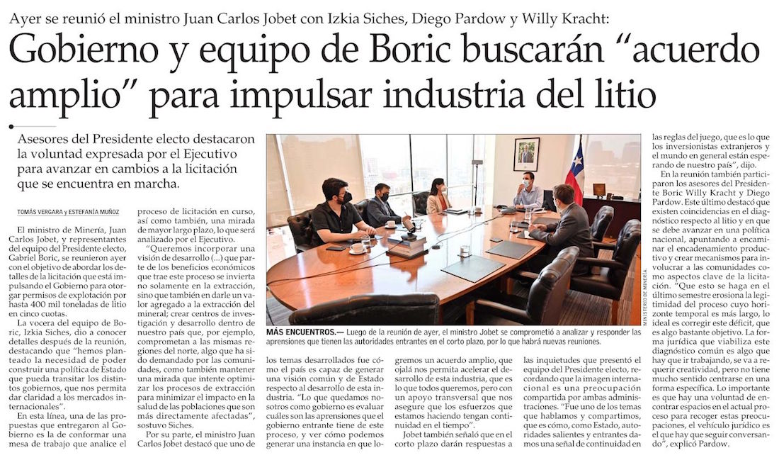 Jobet analizará "aprensiones" del equipo de Boric sobre licitación del litio y responderá antes del plazo de adjudicación - (Pulso)