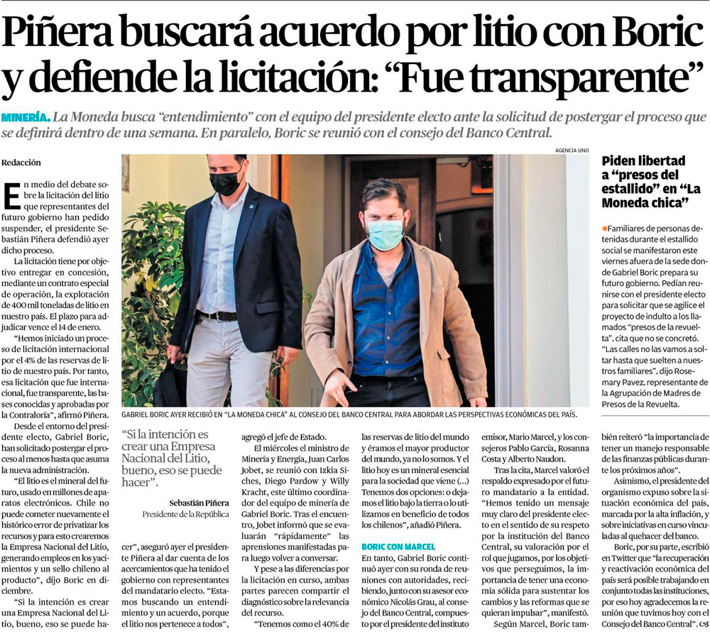 Piñera se abre a la idea de la Empresa Nacional de Litio de Boric: “Eso se puede hacer” - (eldesconcierto)