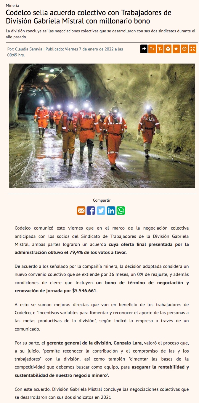 Sindicato de trabajadores de Gaby logra acuerdo en negociación anticipadada - (El Mercurio de Calama)