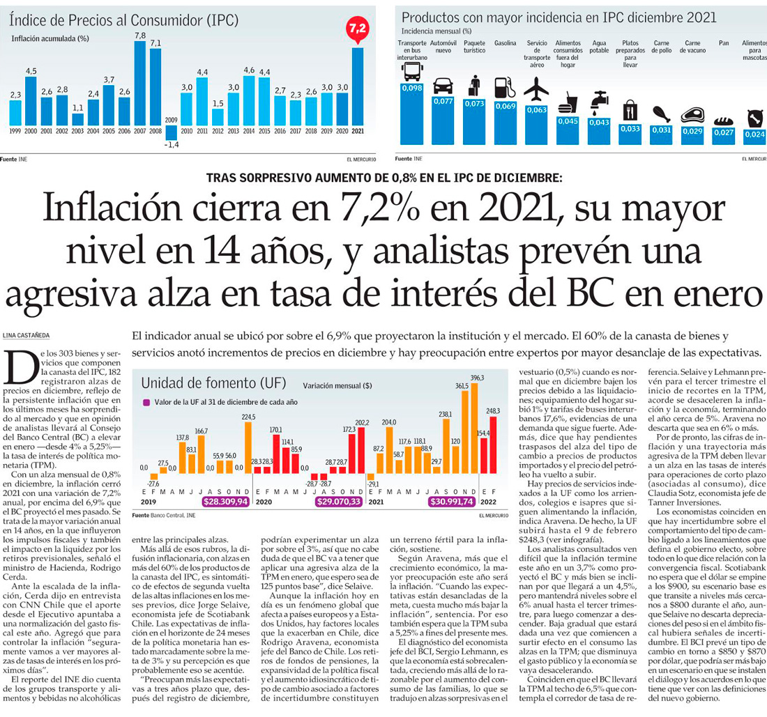 Inflación cierra 2021 con alza de 7,2%, la mayor en 14 años - (Pulso)
