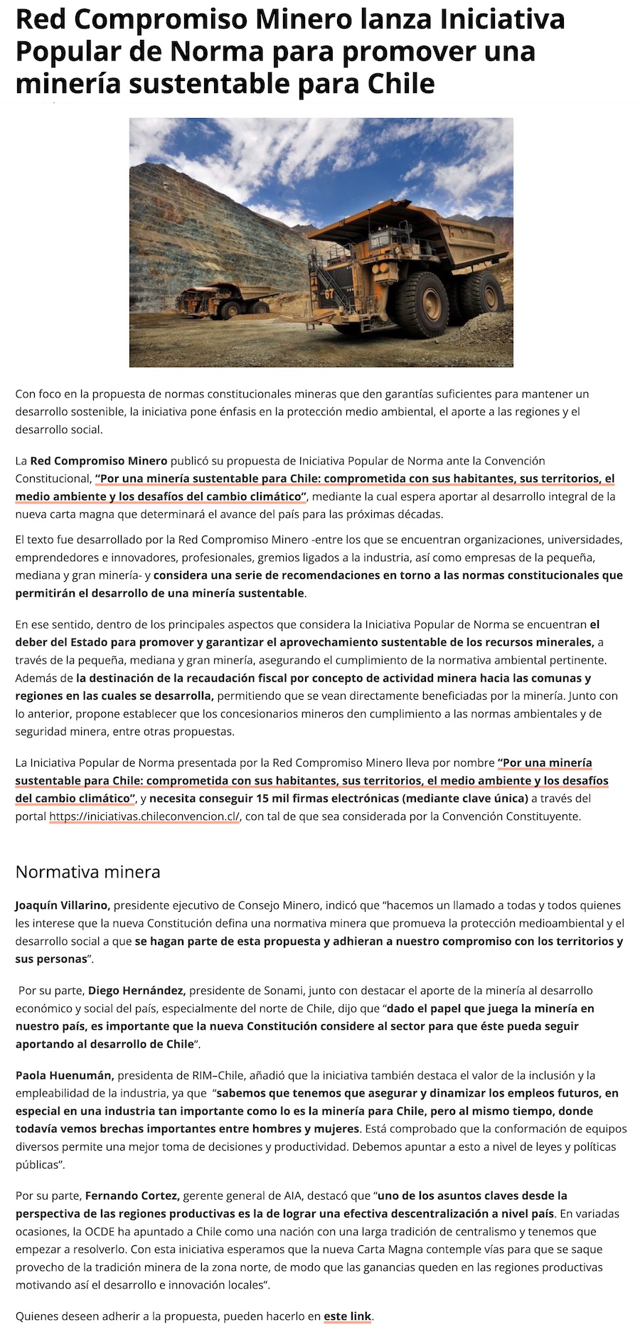 Red Compromiso Minero lanza Iniciativa Popular de Norma para promover una minería sustentable para Chile - (Maray Online)