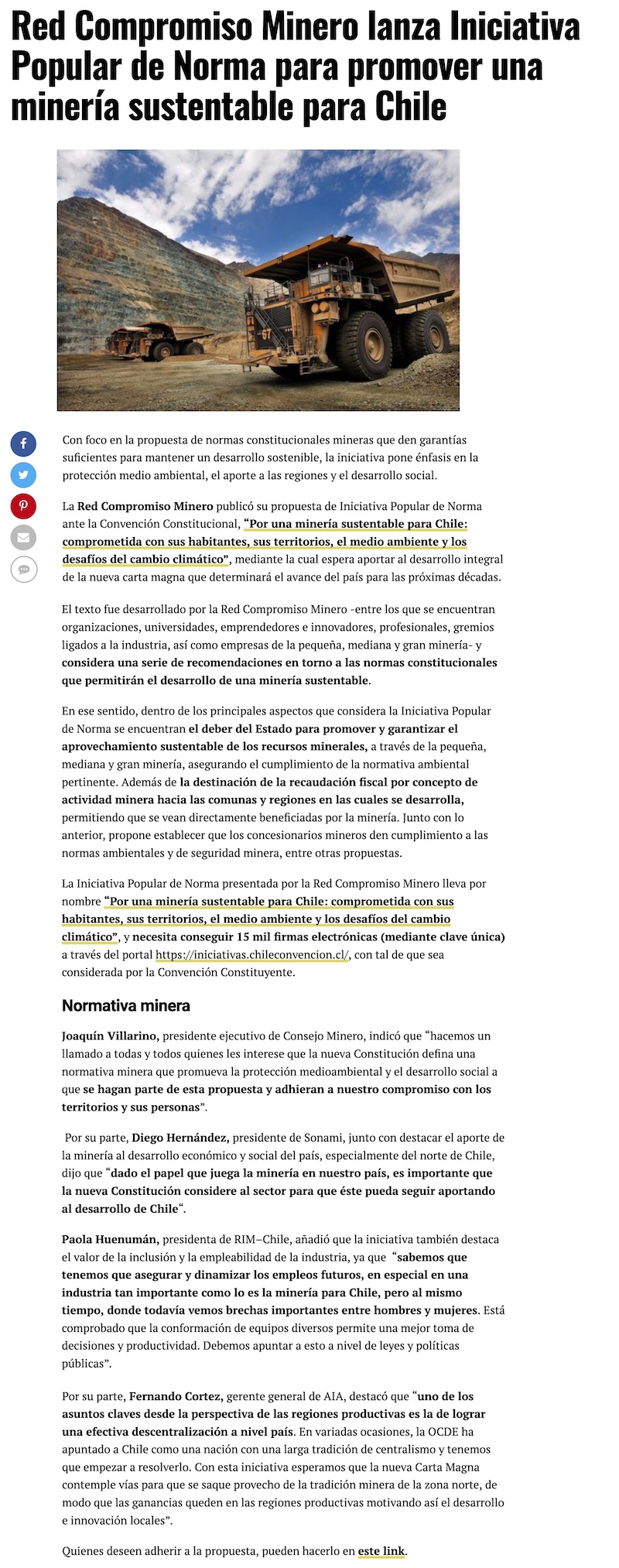 Red Compromiso Minero lanza Iniciativa Popular de Norma para promover una minería sustentable para Chile - (Nostálgica Online)