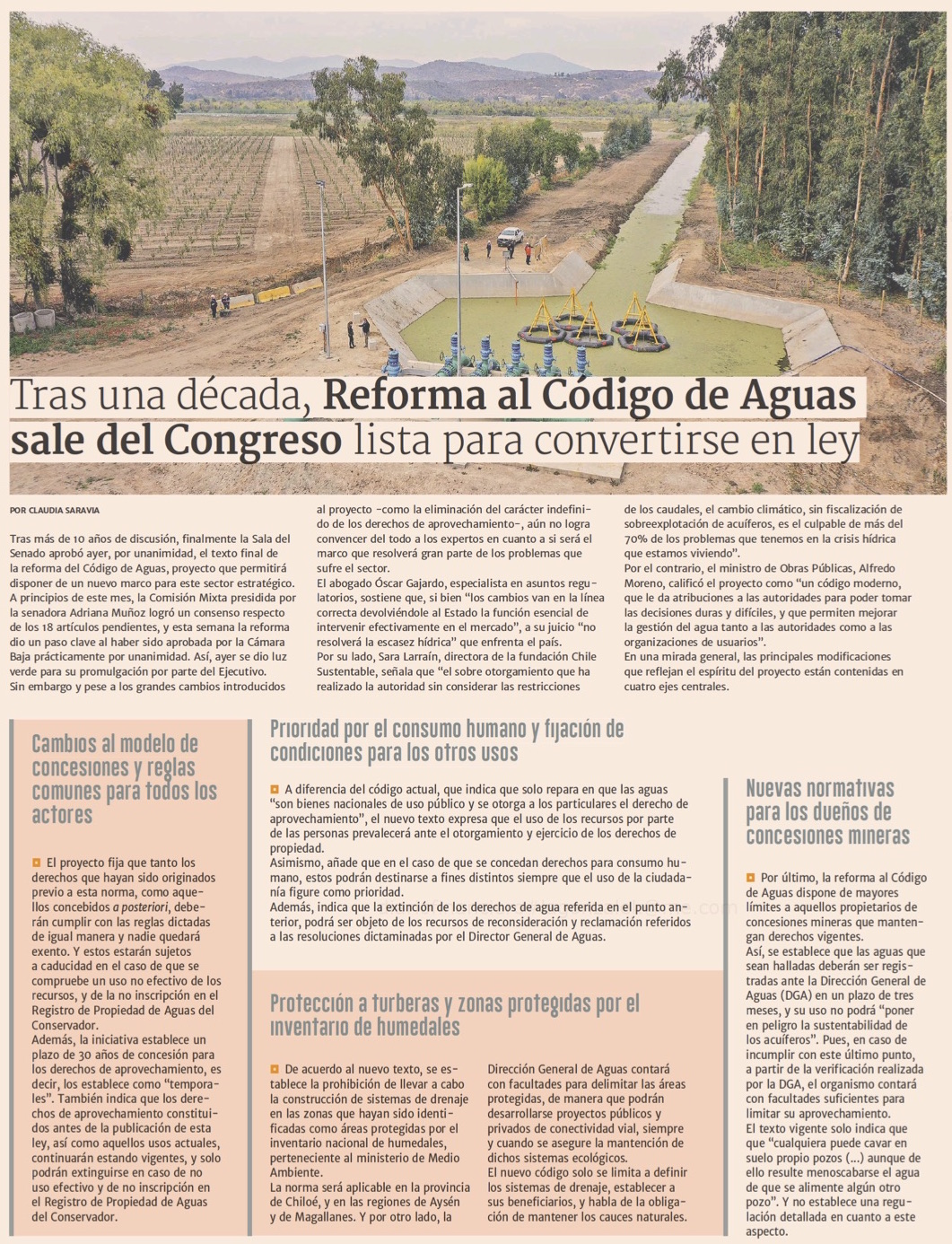 Las siete reformas más relevantes del Código de Aguas que aprobó el Congreso tras 11 años - (El Mercurio de Santiago)