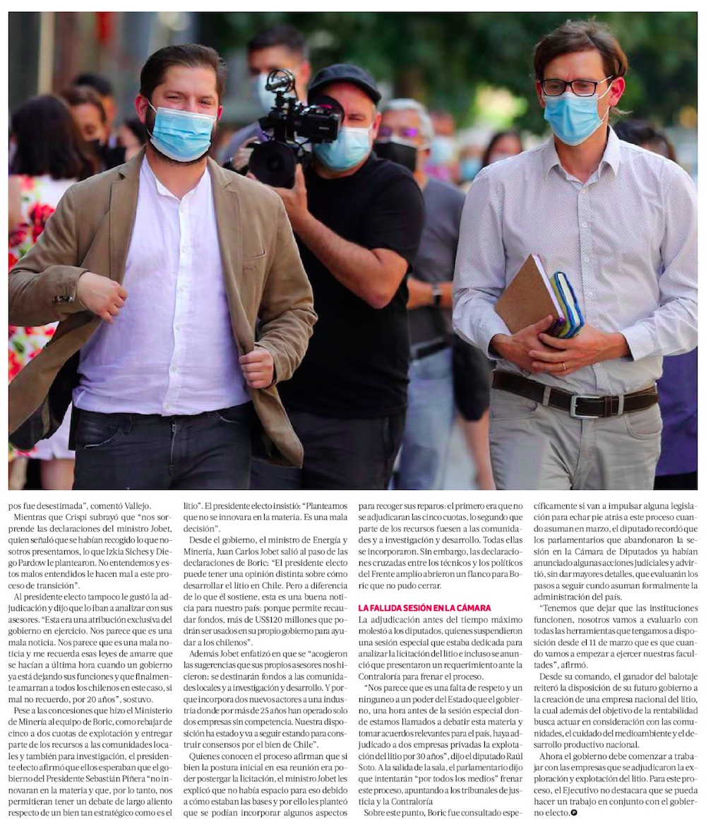 Gobierno adjudica licitación del litio y Boric lamenta que “es una mala noticia para Chile” - (El Mercurio de Antofagasta)