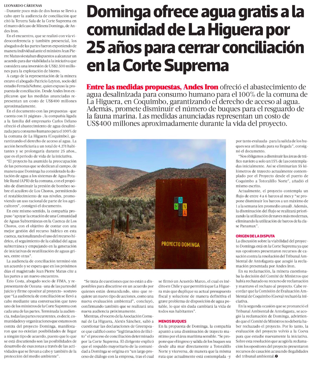 Andes Iron propone nuevas medidas por Dominga, pero organizaciones descartan acuerdo - (Diario Financiero)
