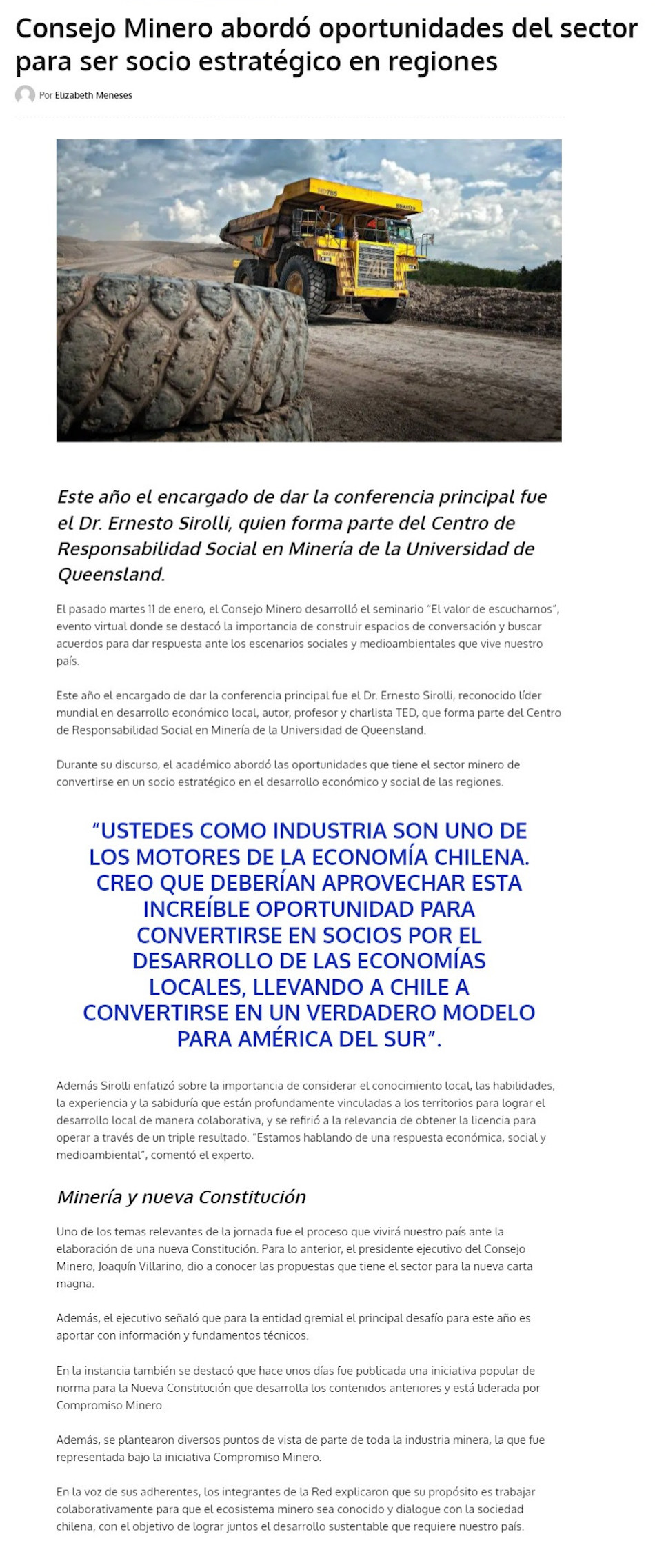 Consejo Minero aborda importancia de la relación entre comunidades y empresas mineras - (mch.cl)