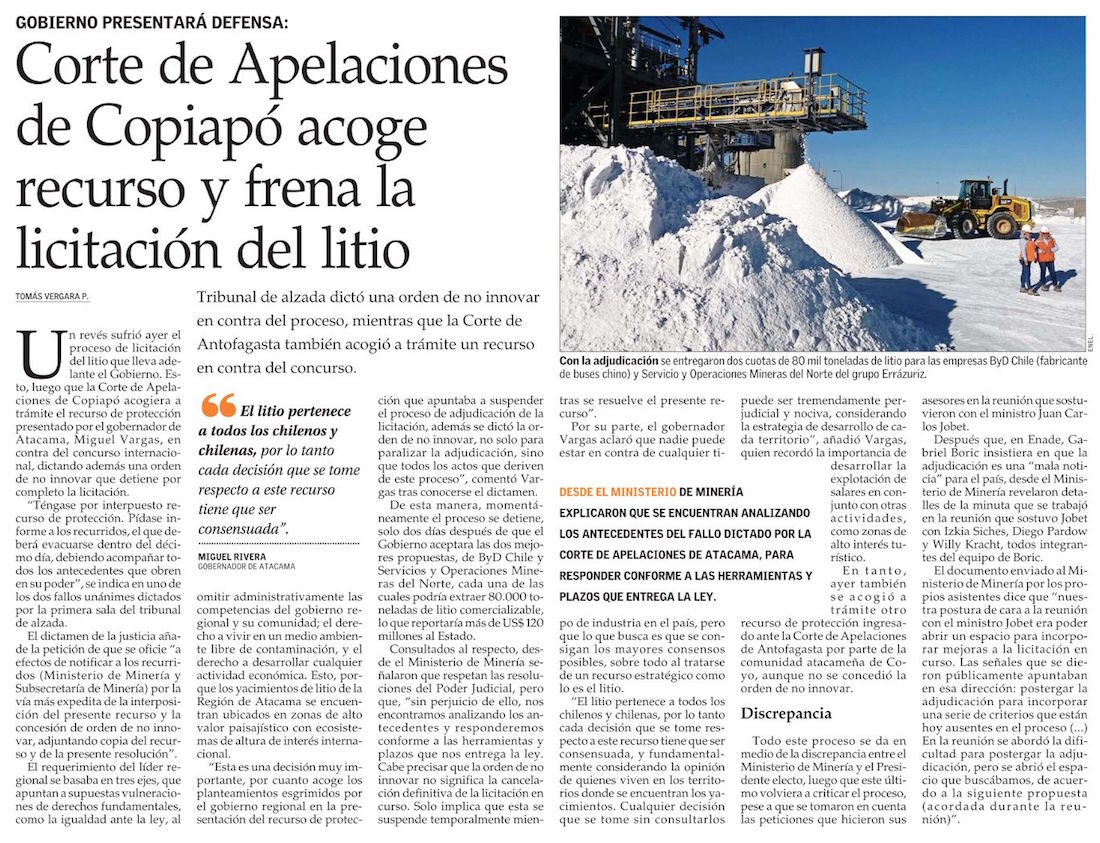 Corte de Copiapó dictó orden de no innovar y suspende licitación del litio - (El Diario de Atacama)