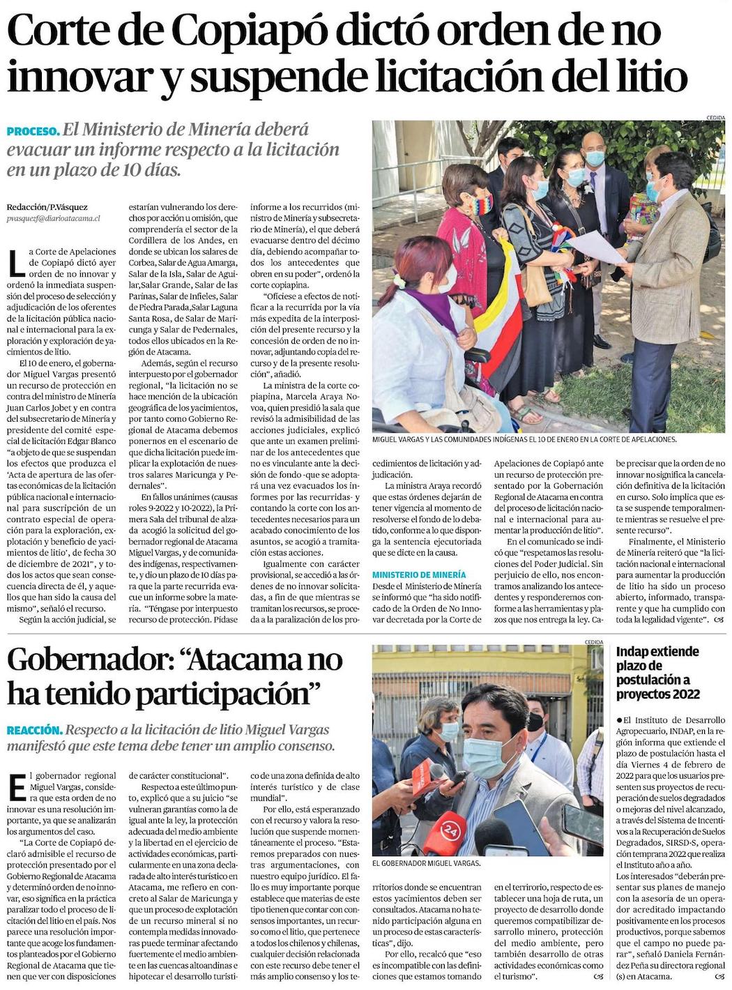 Corte de Apelaciones de Copiapó dicta orden de no innovar y suspende proceso de licitación del litio - (emol)
