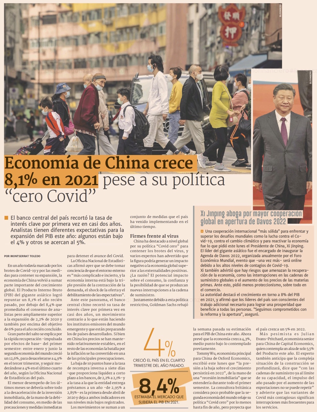 Pese a la desaceleración en último trimestre, China creció 8,1% en 2021 - (La Segunda)
