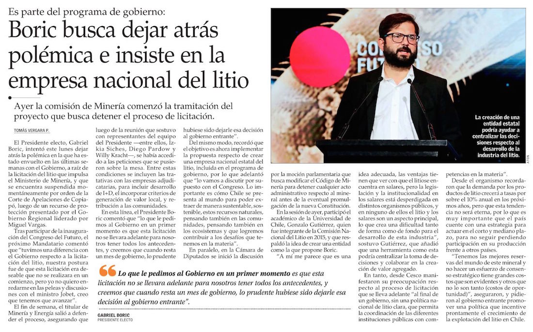 Boric busca cerrar la polémica con Jobet por la licitación del litio - (Diario Financiero)
